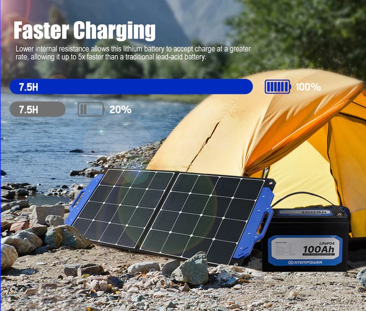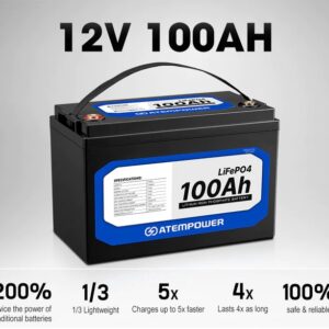 La Batería de Litio ATEM POWER 100Ah 12.8V LiFePO4 entrega alto rendimiento, seguridad y mayor autonomía real para sistemas solares, camper, 4×4 y aplicaciones off-grid.