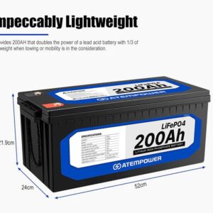 La batería litio 200Ah 12V ATEM POWER LiFePO4 es una solución de alta capacidad diseñada para sistemas solares en camper, motorhome, 4×4 y aplicaciones off-grid exigentes.