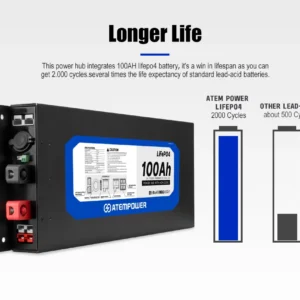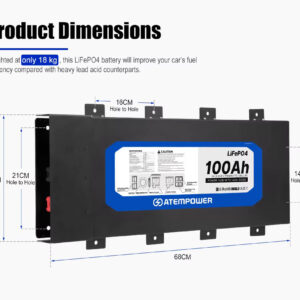 La Batería LiFePO4 ATEM POWER 100Ah plana es una solución todo-en-uno diseñada para camper, 4×4, motorhome y sistemas off-grid móviles.