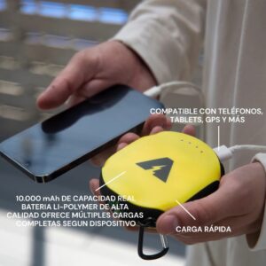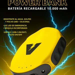 Lleva energía indestructible a tu próxima aventura. El Powerbank VOLTIQ 10.000 mAh no es una batería común: es un equipo de supervivencia portátil. Construido en ABS resistente y silicona, está diseñado para ser impermeable, a prueba de golpes y polvo, sobreviviendo a las condiciones más extremas del outdoor, la playa o un día de asado.