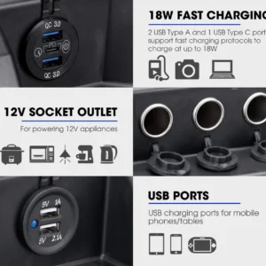 La Caja de Batería ATEM POWER AP12BB-DC es la solución ideal para transformar una batería de 12V en una estación de energía portátil, perfecta para camping, 4×4, camper, motorhome y uso marino.