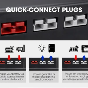 Conecta una batería (AGM, plomo o litio compatible) y obtén energía inmediata para: