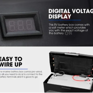 La caja se desconecta automáticamente cuando el voltaje cae por debajo de 12,5 V, protegiendo la batería de descargas profundas.
