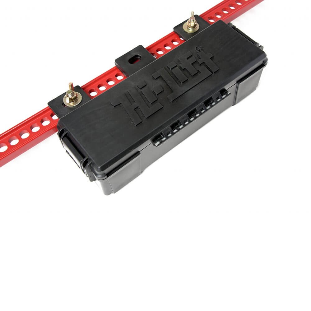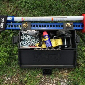 La caja de almacenamiento Hi-Lift Jack Gear proporciona un almacenamiento conveniente para accesorios de Hi-Lift y herramientas de recuperación. Se monta directamente en la barra de conector Hi-Lift para un fácil almacenamiento y acceso. Se puede bloquear mediante una cerradura suministrada por el propietario o la perilla de bloqueo versátil Hi-Lift Jack VERS-LK.