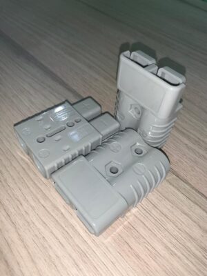 Conectores SB de 2 polos para alimentación y distribución de corriente continua (DC) en conexiones de baterías, carcasa de plástico en una sola pieza con acero inoxidable en los resortes para mantener los contactos de baja resistencia en su lugar.