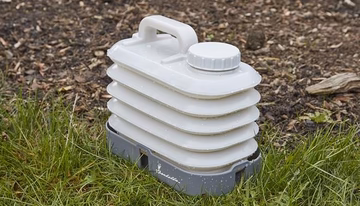 A diferencia de otros depósitos blandos, este estanque de agua plegable incluye una base sólida que le da estabilidad sobre terrenos irregulares. No se tambalea ni se derrama con facilidad. Trabaja seguro junto a tu fogata o dentro del baúl.
