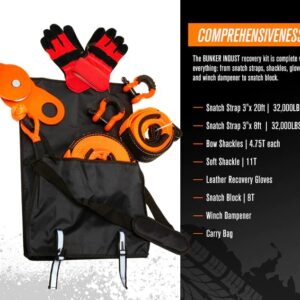 - Integralidad: el kit de recuperación de BUNKER INDUST está completo con todo: desde correas de arranque, grilletes, guantes y amortiguador de cabrestante hasta polea de arranque.