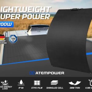 Panel solar flexible ETFE 200W ATEM POWER con tecnología shingled. Ultrafino, IP68 y alto rendimiento. Ideal para camper y 4×4.
