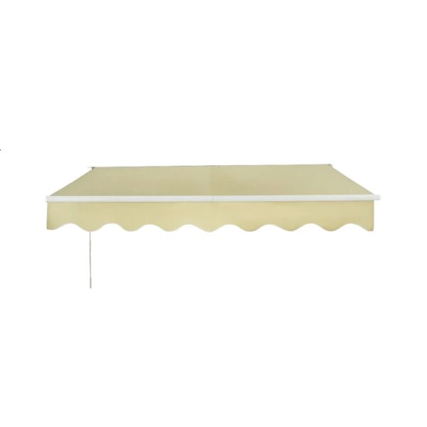 Toldo con brazo retráctil para terrazas de estructura metálica, color crudo, de fácil instalación, tela de calidad, poliéster 280 g/m, recubierta de poliuretano, impermeable, resistente al sol y rayos UV. Resistente al óxido, retráctil y reclinable (Incluye manivela).